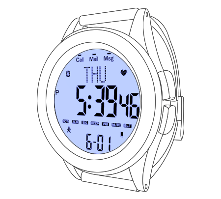 双排显示,计步卡路里消耗目标提醒,红外方式心跳量测。