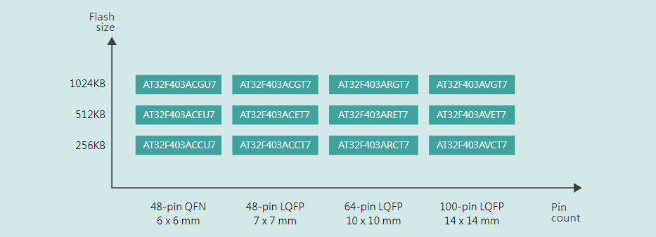 ARM Cortex®-M4F AT32F403A 系列 产品列表