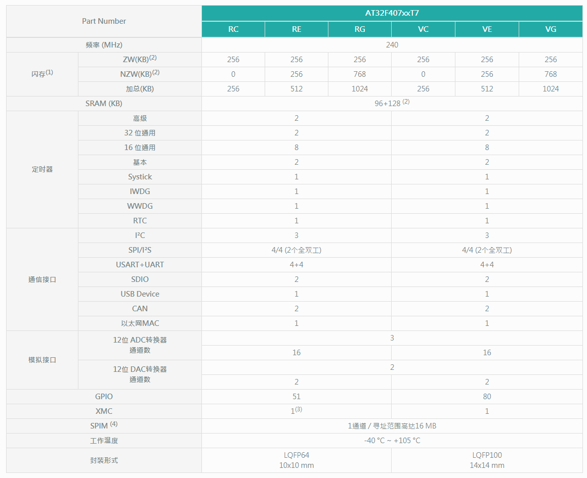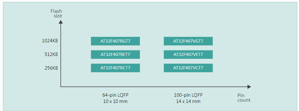 ARM Cortex®-M4F AT32F407 系列 产品列表