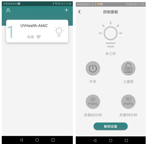 支持IOS与Android系统 使用2.4GHzWifi网络 具有开启/关闭杀菌功能 儿童锁功能